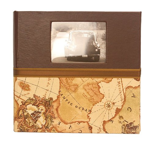 This travel photo album features a classic old world map in fabric and brown faux leather. Album is embellished with a grosgrain ribbon layered with a satin accent ribbon. Can personalize you own picture on front cover. Comes with an attractive box for protection and is perfect for gift giving. Sleeved pages makes for easy placement of photos. It holds 2 4-inch by 6-inch photos per page, or 1 5-inch by 7-inch per page. Memo area on all pages.