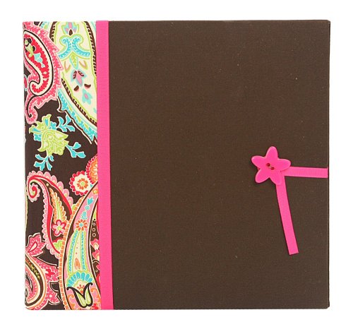 This fun paisley and brown fabric combination photo album with pink ribbon features a closure of a pink star button with a pink grosgrain tie ribbon. Comes with an attractive box for protection and is perfect for gift giving. Sleeved pages makes for easy placement of photos. It holds 2 4-inch by 6-inch photos per page, or 1 5-inch by 7-inch per page.
