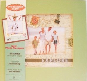Pre-Designed Photo-Flip Pages Album. All are beautifully decorated with the Explore theme fit for preserving travel, vacation and holiday memories. Space for Journaling. Hold more than 80 photos on 8 pre-designed inserts/pages (4 x 6). May hold more pages. Acid FREE, Lignic FREE and PVC FREE. Measures 11 x 10 inches.
