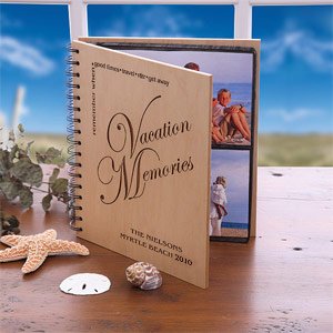 Whether it is a trip to Disney, a once-in-a-lifetime European tour, or summertime at the beach, capture your favorite photo moments in our Vacation Memories© Wood Album. Leisurely terms creatively border the top corner of the album cover, along with the namesake phrase and any 3-line custom personalization you choose. Include any first names, a family name, vacation destination, special date, and more. Natural maple veneer with spiral binding. Album Size: 7 2/3" x 8 3/4"Photo Size: 4" x 6"No. of Photos: 72 (18 pages; 4 photos per page)See coordinating Vacation Memories© Frame sold separately.Happy Memories!