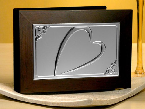 Wood with Embossed Silver Plated Heart Design Photo Album (Set of 32) Overview