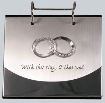photo albums : This special EZ-flip is an easy to use slip-in pocket display system the whole family will enjoy. Wedding Bands features interlocking wedding bands with a lovely cover engraved inscription With this ring I thee wed. Acid-free pockets to display 40 4x6 photos back-and-front. Makes a great gift for new inlaws and special friends . . . Or just treat yourself. Produced by Malden Design for SendAFrame.