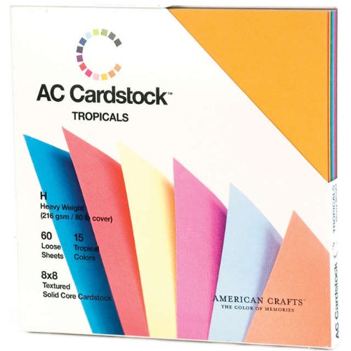 AMERICAN CRAFTS-AC Cardstock: 80lb. These packs of heavy cardstock include four each of fifteen colors. Bright vibrant colors inspired by the Tropics; the Earth; Mother Nature; Artist Color Wheels or our sweet babies (this excludes White and Black which only have the one color). Perfect for scrapbooks; photo mats; greeting cards and any other paper craft project. These sixty loose sheets of 8x8in cardstock come in a convenient dispenser package. Package measurements: 8-1/8x8-1/8x13/16in. Imported.
