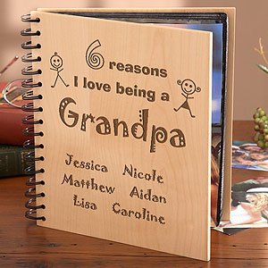 Count up your special reasons and we'll custom personalize each of their names - up to 15 names! A fun boy and girl stick figure graphics will be included along with your title in the festive letter style shown.Natural maple veneer with spiral binding. Album Size: 7 2/3" x 8 3/4"Photo Size: 4" x 6"No. of Photos: 72 (18 pages; 4 photos per page)A wonderful way to preserve all the precious moments of your life together. A fabulous gift for Father's Day, Birthdays, or any special occasion!