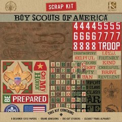 BE PREPARED! And be official! K&Company is delighted to bring you the officially licensed Scrap Kit for the Boy Scouts of America. This kit includes just what you need to remember special Scouting moments and preserve them for future generations. Do your good turn for the day and salute your favorite Scout by capturing campouts, jamborees, and meetings with this official Scrap Kit. On our honor, you'll do your best. Each versatile kit contains six coordinating papers and one sheet each of dimensional domed die-cut stickers.